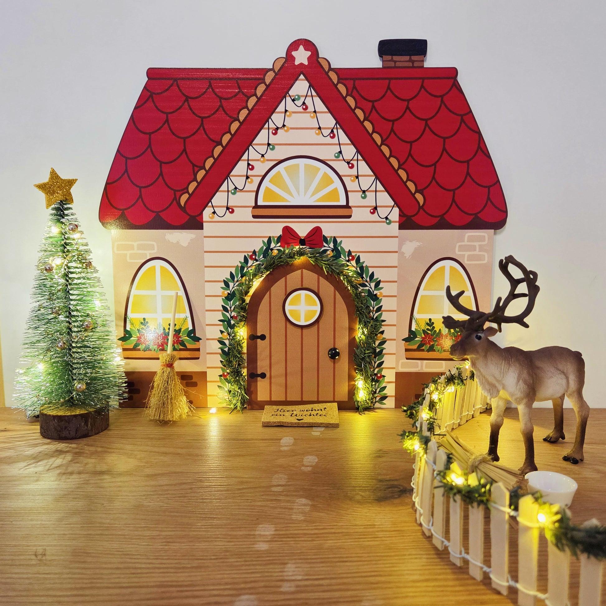 Das Wichtelhaus mit der kleinen Türe ist der Ort, an dem euer Wichtel „einzieht“. Ihr könnt selbst bestimmen, wann und wie er auftaucht – perfekt für alle, die ihre eigene Tradition beginnen oder fortsetzen wollen.